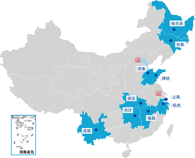 哈爾濱 長春 濟南 濰坊 武漢 長沙 南昌 上海 杭州 昆明